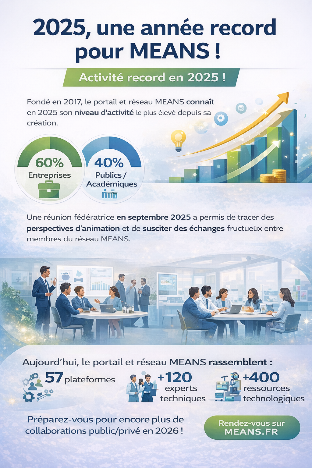 En interne, MEANS a été identifié en 2025 par l’Université comme une initiative inspirante en matière de développement durable et de responsabilité environnementale. La démarche favorise la réduction de l’empreinte écologique et la rationalisation de la politique d’achats, en rendant visibles les plateformes technologiques, véritables lieux de mutualisation et d’optimisation des ressources technologiques.